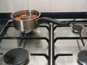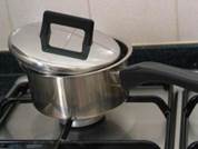 Als het water in het pannetje kookt, zet je de gasknop op de laagste stand.