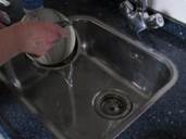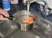Giet (gelijk na het koken dus) het hete water uit de pan weg boven de gootsteen.